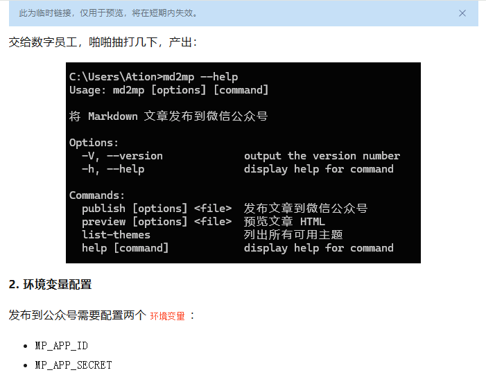 md2mp publish example.md; - 命令中的